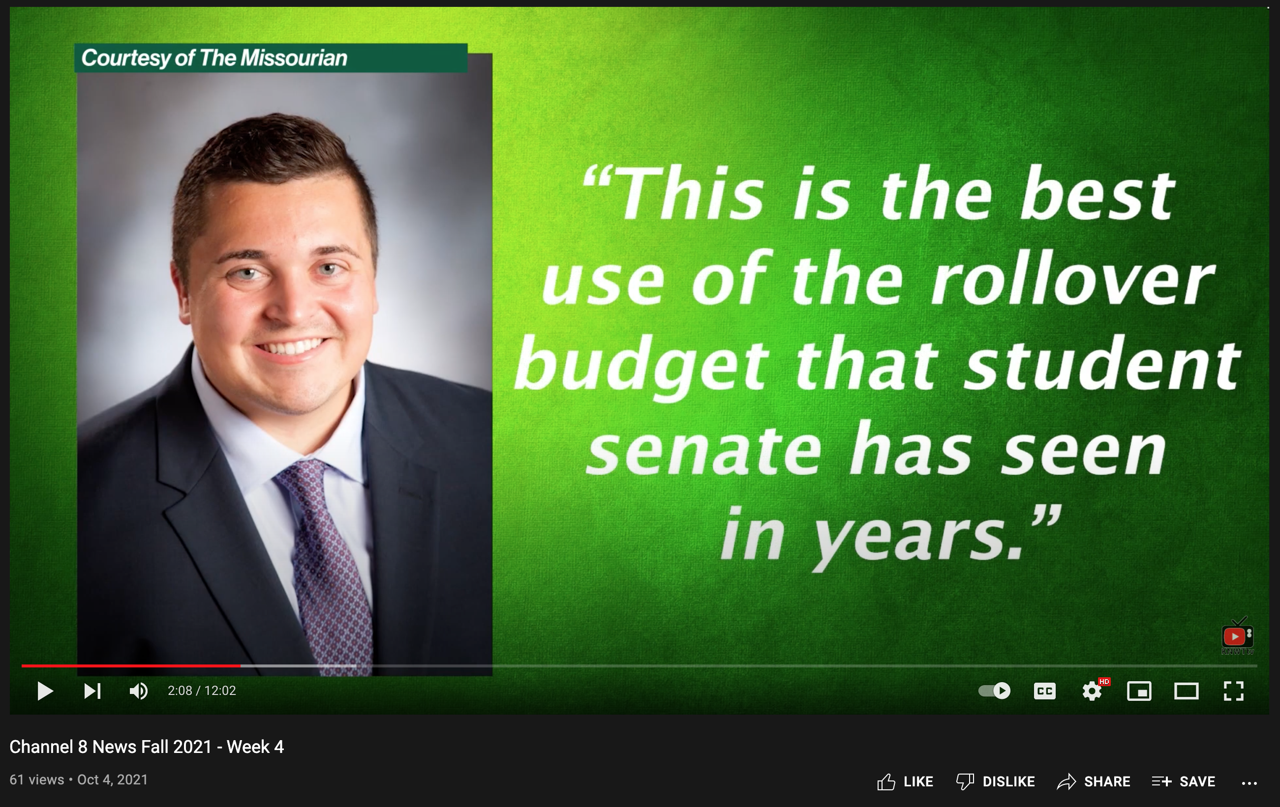 | KNWT TV8 covers the news that Student Senate contributed $22,000 to the We Gotchya endowment. Oct. 4, 2021 |