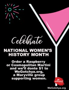 Every Thursday in March order a Raspberry or Cosmopolitan Martini and $1 will be donated to We Gotchya.